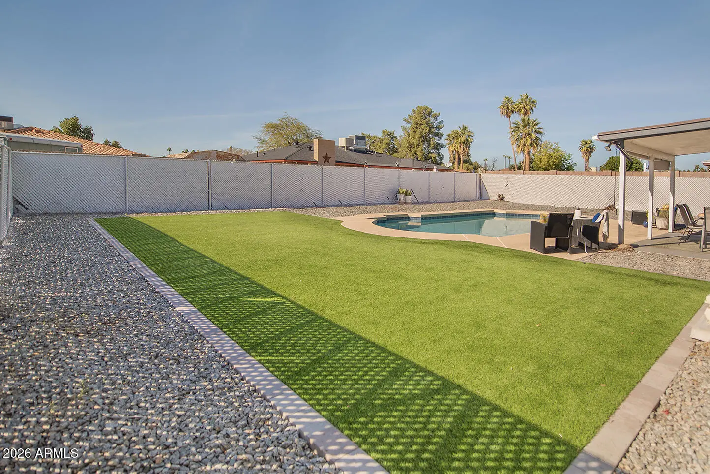 Beautifully Updated Home-Pool-No HOA! Discover this 3-bedroom, 2-bath home located in desirable Newcastle Estates, offering the perfect blend of comfort, functionality, & low-maintenance living. Situated on a spacious lot, this home features artificial turf & easy-care landscaping in both the front & back, ideal for enjoying Arizona living without the upkeep. Inside, you'll find updated flooring throughout, remodeled bathrooms & updated windows that bring in abundant natural light. Major system improvements include updated plumbing and electrical. Step outside to your private backyard retreat featuring a sparkling pool, artificial turf, covered patio plus additional space. With no HOA, ample outdoor space & thoughtful updates throughout, this home is move in ready & checks all the boxes