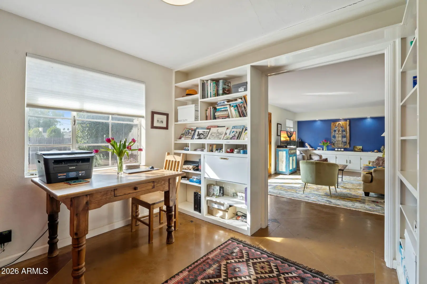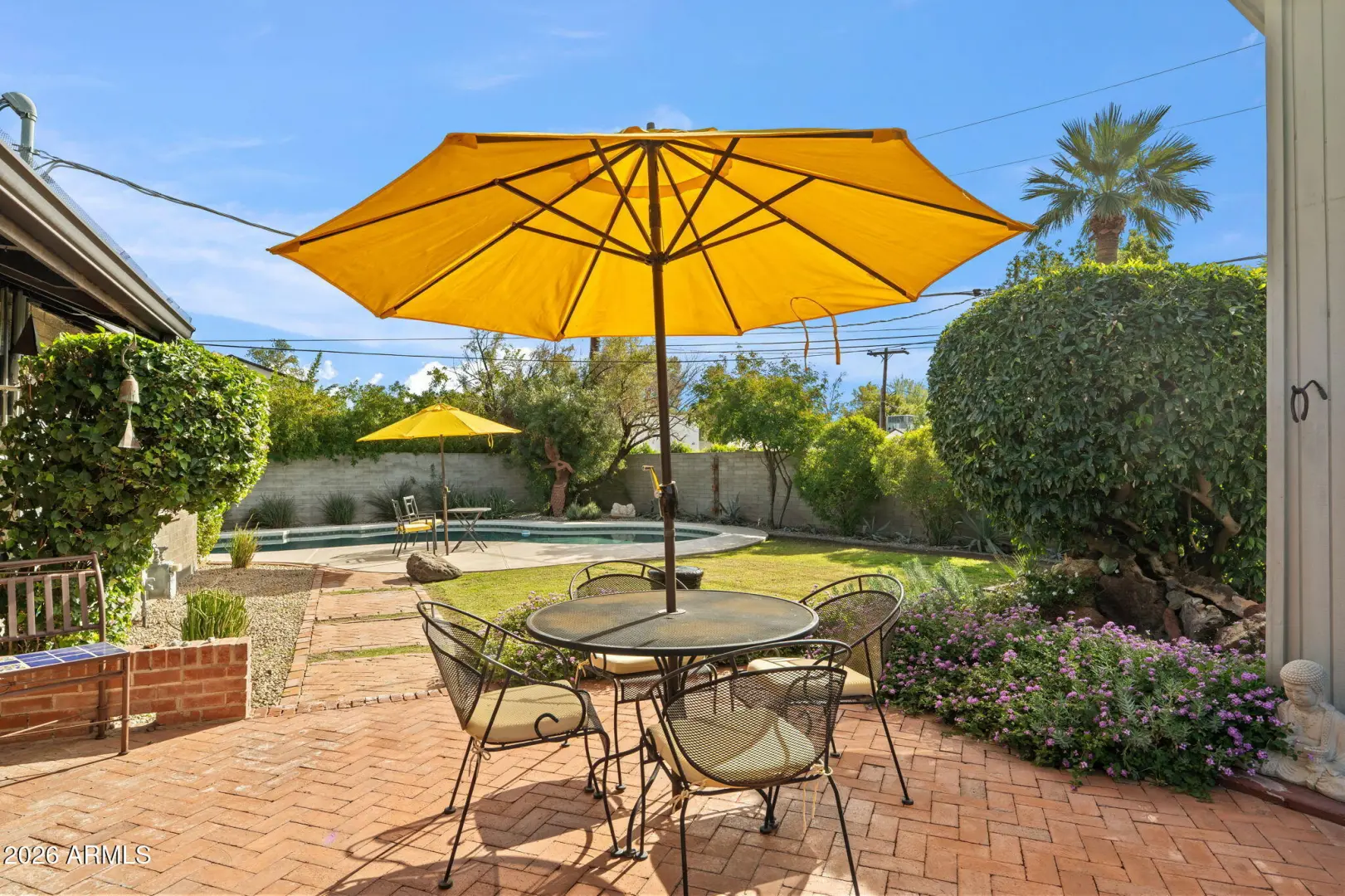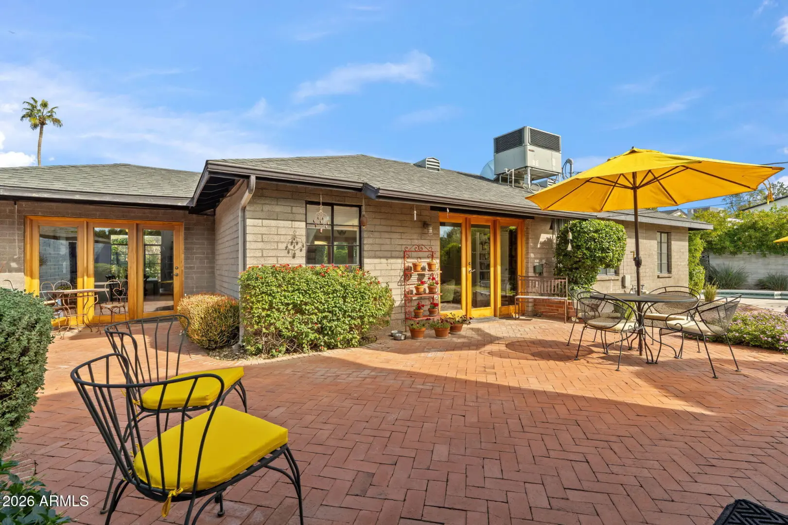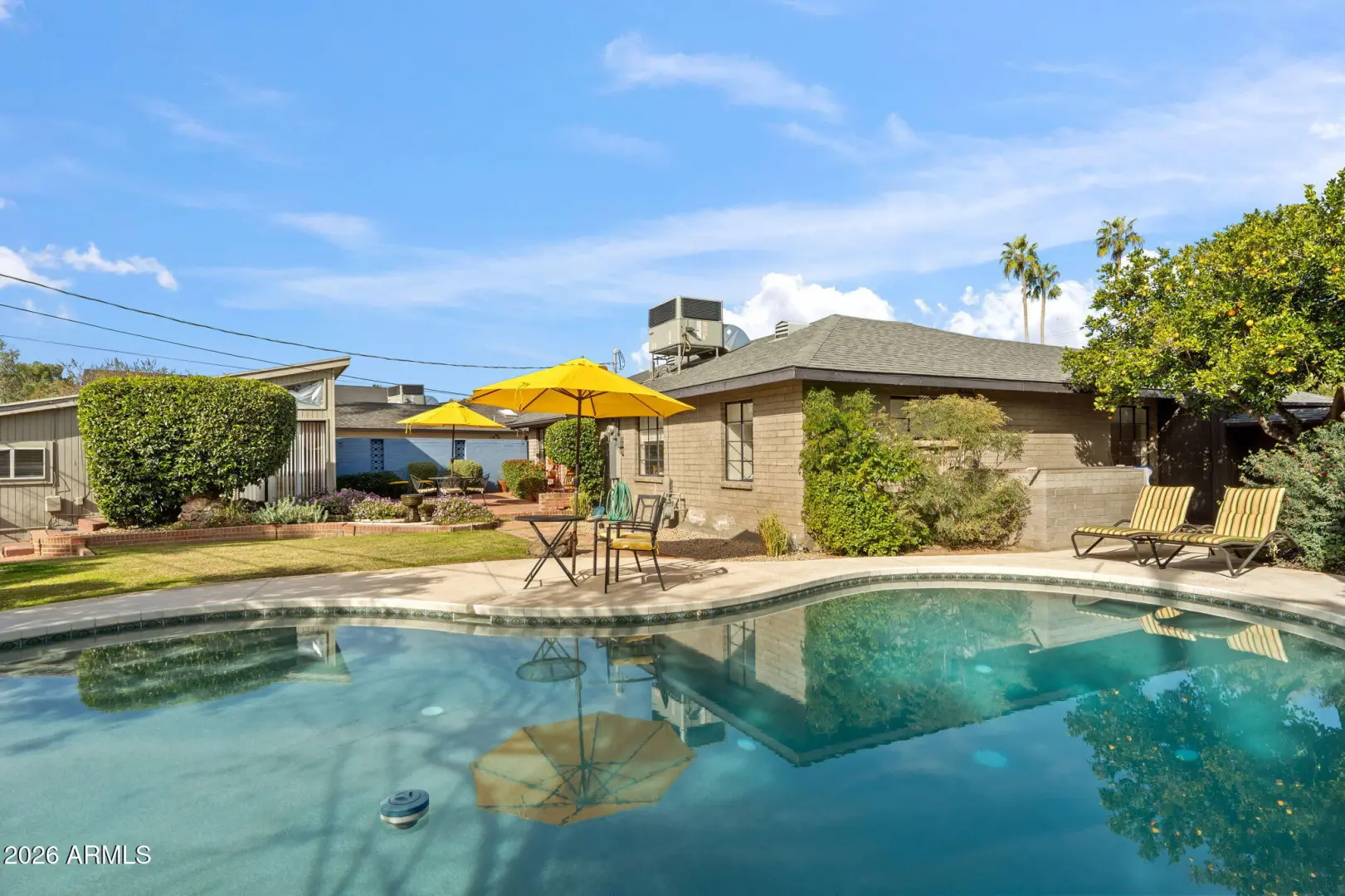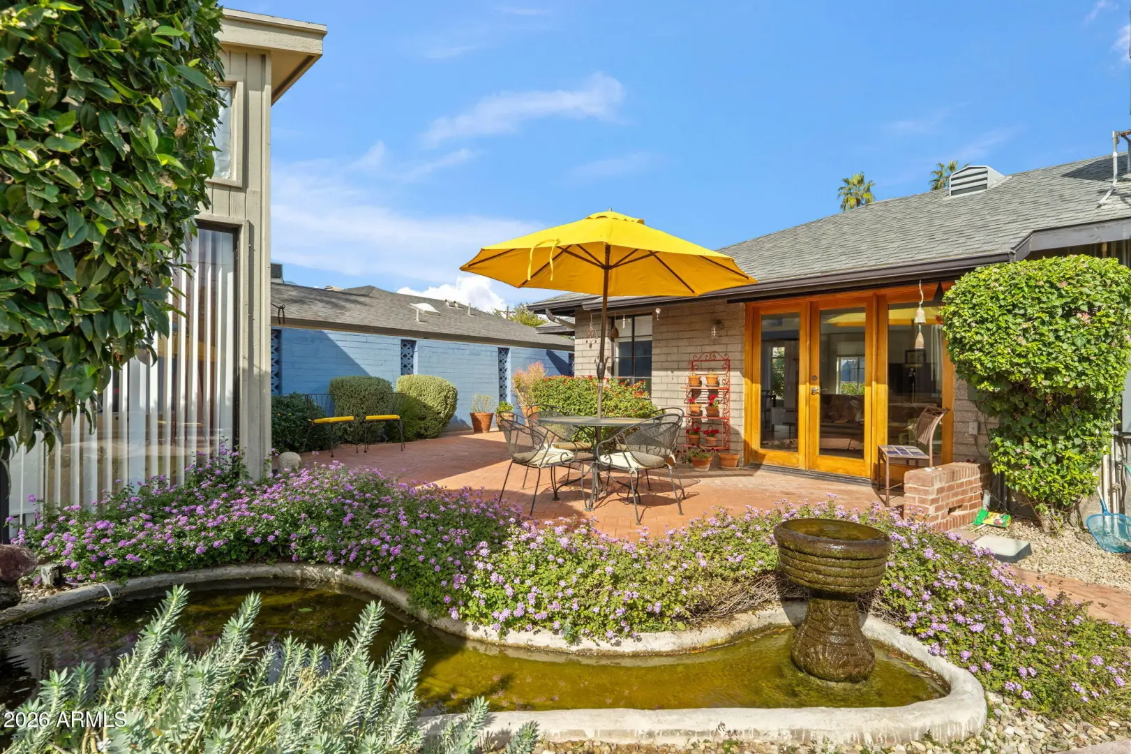 Mid-century charm meets endless opportunity in highly sought-after Biltmore Heights. This well-maintained light-filled home, professionally updated with contemporary design elements, features Italian Mitton kitchen cabinetry with Bosch appliances, Ceasar stone countertops, and recessed lighting, Kohler, Scarabed, and Restauration Hardware bathroom fixtures, stained cement floors throughout, and French doors opening to two different brick patio areas. The rather spacious dining room invites family and friends to gather with one another. Built-in bookshelves and cabinets embellish this home. The private backyard offers a serene retreat complete with newly refinished Pebble Tec pool and tranquil pond and fountain, and surrounded by mature landscaping. Enjoy a spacious laundry room,