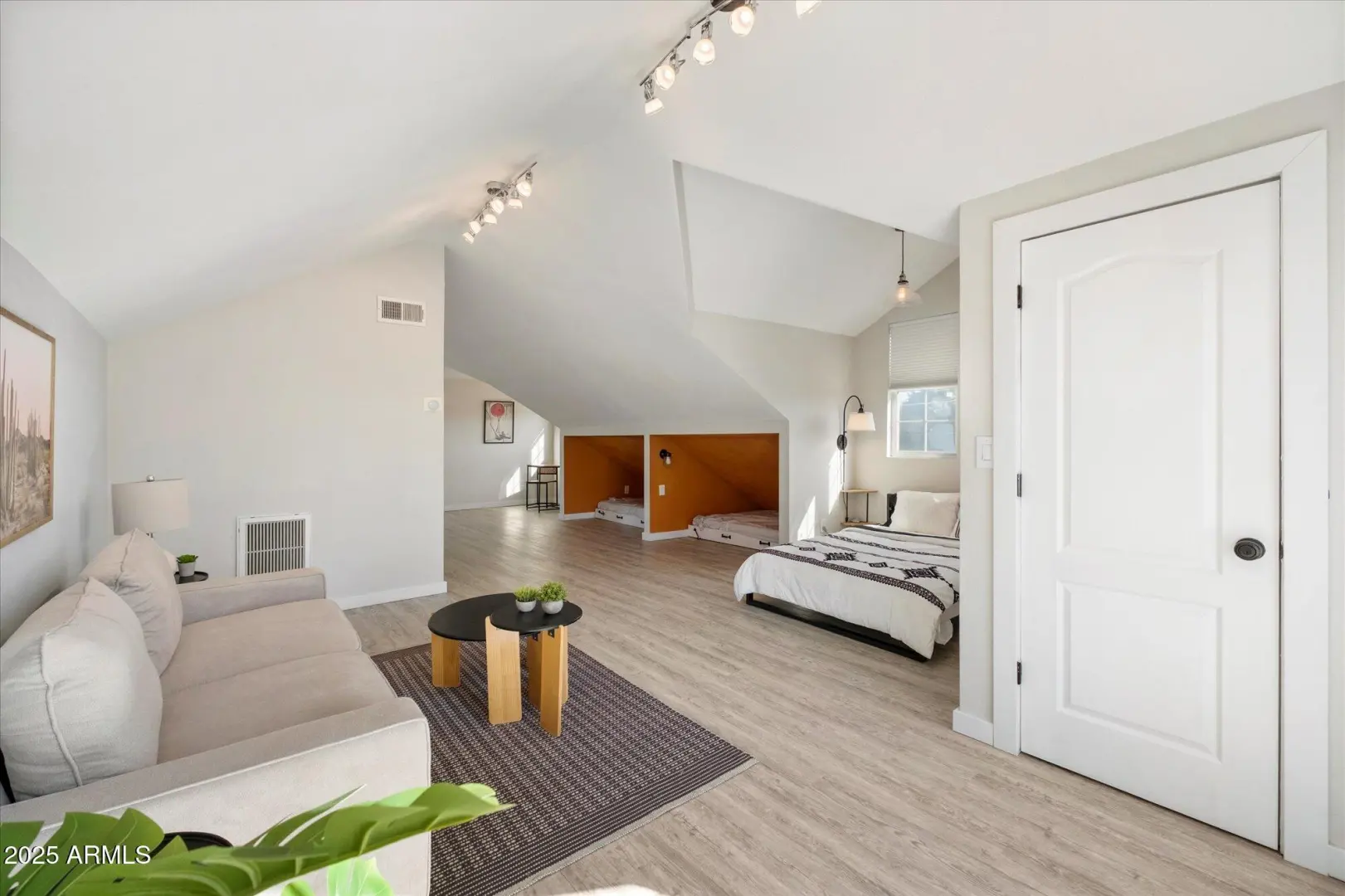 Discover the charm of the historic GarfieldNeighborhood in this rare 4bed, 3bath bungalow offering skyline views, effortless walkability & quick freeway access. With almost 2500sf, this home is a true downtown Unicorn, featuring enclosed sunrooms, 10' ceilings & SPACE! The upstairs deck has city skyline views that are magical. The upstairs can function as either a 2nd split master suite or as a full ADU/in-law setup with its own entrance...ideal for family you may want to keep at arms length or OR use as rental income. The heart of this home is the KITCHEN, new cabinetry, upgraded appliances like a gas range, quartz countertops, lighting is perfect for an intimate night of cooking at home or full out entertaining. The jumbo sized lot with automatic gate opener allows easy parking. The